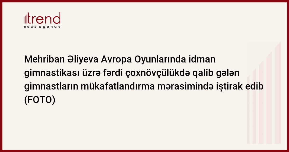 Azərbaycanın birinci xanımı, Azərbaycan Gimnastika Federasiyasının prezidenti, Bakı-2015 Avropa Oyunları Təşkilat Komitəsinin sədri Mehriban Əliyeva Avropa Oyunlarında idman gimnastikası üzrə kişilər arasında fərdi çoxnövçülükdə qalib gələn gimnastların mükafatlandırma mərasimində iştirak edib.