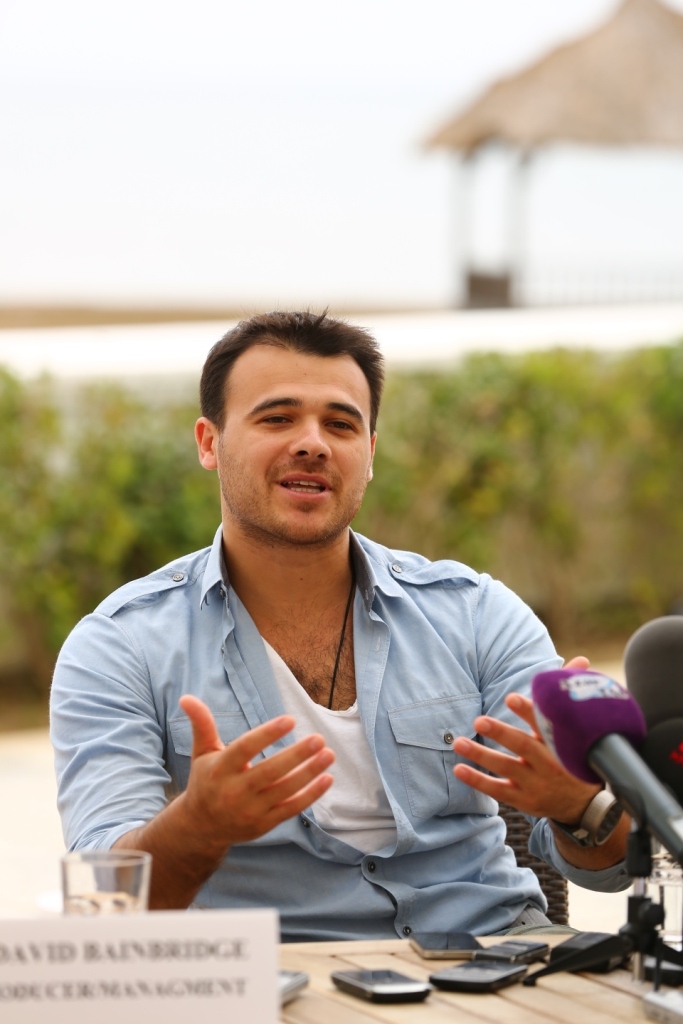 "Mən bir azərbaycanlı kimi şadam və müsabiqə iştirakçısı kimi olmasa da, hər halda öz ölkəmi təmsil edərək çıxış edəcəyim "Eurovision" müsabiqəsini gözləyirəm. Mən bu məqamı gözləyərkən xoş həyəcan keçirirəm", - Emin jurnalistlərlə söhbətə başlayıb.