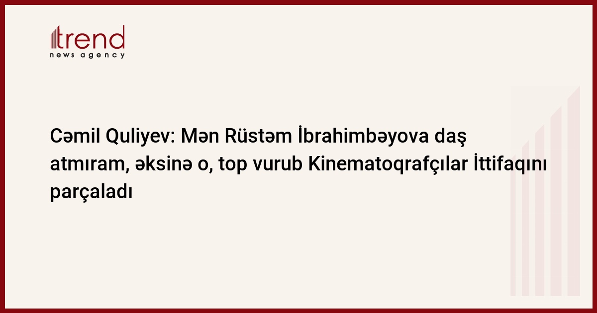Mən Rüstəm İbrahimbəyova daş atmıram, əksinə o, top vurub Kinematoqrafçılar İttifaqını parçaladı. Bunu bazar ertəsi Trend-ə Azərbaycan Respublikası Kinematoqrafçılar İttifaqının katibi, Dövlət Film Fondunun direktoru Cəmil Quliyev Mehriban Vəzir və Cəmil Həsənlinin ona qarşı ittihamına cavabında deyib.