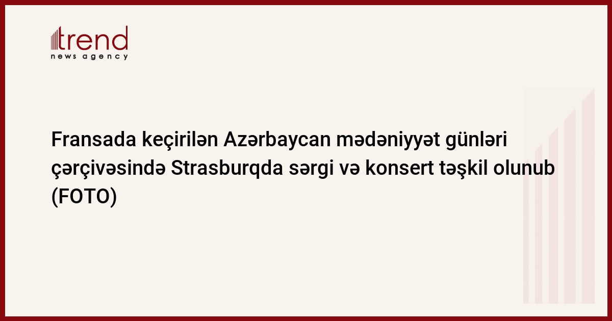 Heydər Əliyev Fondunun təşkilatçılığı və Azərbaycanın Fransadakı səfirliyinin dəstəyi ilə "Qafqazın mirvarisi olan Azərbaycanın mədəni dəyərləri" layihəsi əsasında Fransada keçirilən Azərbaycan mədəniyyət günləri çərçivəsində fevralın 9-da Strasburqda sərgi və konsert təşkil olunub. Bu barədə Trend AzərTAc-a istinadən məlumat verir.