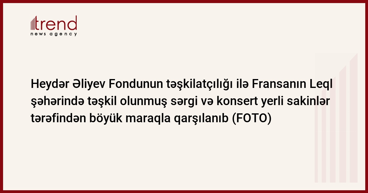 Elə buna görə də ölkəmizi fransızlara yaxından tanıtmaq məqsədilə Heydər Əliyev Fondunun təşkilatçılığı və Azərbaycanın Fransadakı səfirliyinin dəstəyi ilə "Qafqazın mirvarisi olan Azərbaycanın mədəni dəyərləri" layihəsi çərçivəsində "Azərbaycan günləri" ilə bağlı Leqldə təşkil olunan sərgiyə və konsertə yerli sakinlər böyük maraq göstərmişlər.