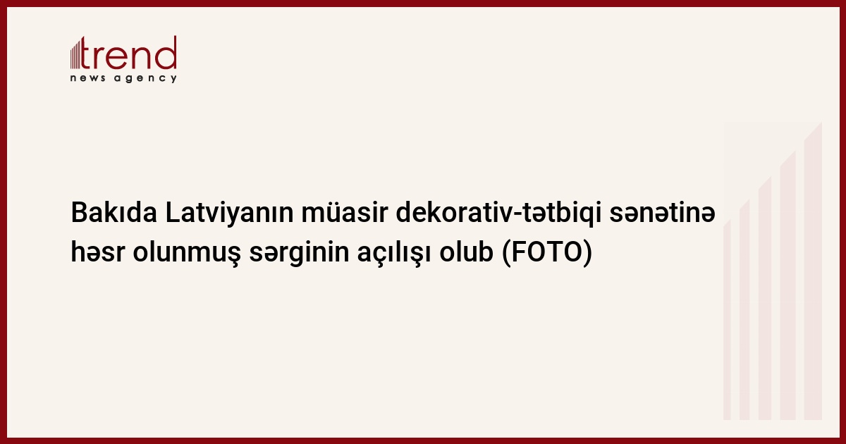 Bu gün Bakıda, "QGALLERY" qalereyasında XX əsrin əvvəllərinə söykənən, lakin ənənələri uzaq keçmişə qədər davam edən Latviyanın müasir dekorativ-tətbiqi sənətinə həsr olunmuş "Latış Müasir İncəsənəti: Şüşə, Parça və Keramika" adlı sərginin açılışı olub.