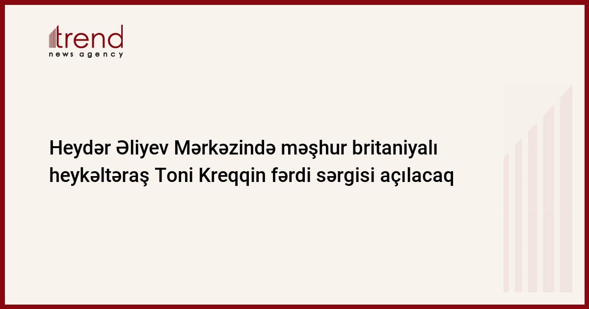 Aprelin 9-da Heydər Əliyev Mərkəzində dünya müasir incəsənətinin görkəmli nümayəndələrindən biri, məşhur böyük britaniyalı heykəltəraş Toni Kreqqin fərdi sərgisi açılacaq.
