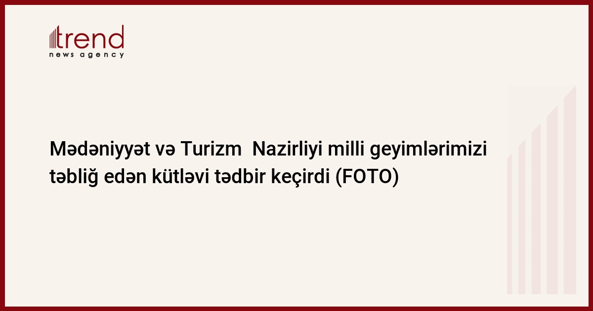 Mədəniyyət və Turizm Nazirliyi milli geyimlərimizi təbliğ edən kütləvi tədbir keçirib.