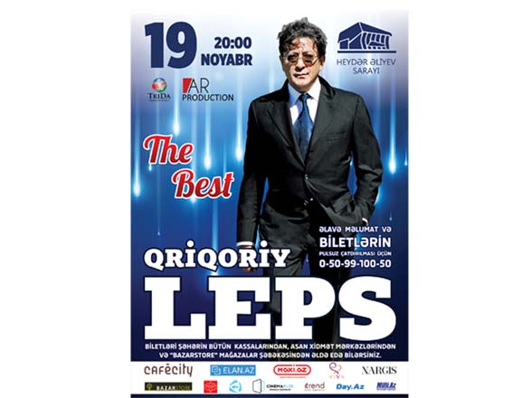 Noyabrın 19-da saat 20:00-da Bakıda Heydər Əliyev Sarayında Qriqori Lepsin "The Best" adlı möhtəşəm konserti keçiriləcək.