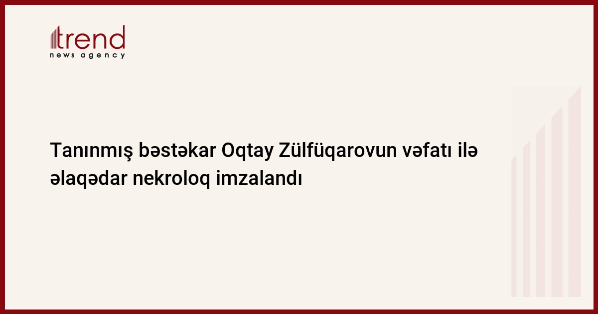 Azərbaycan Prezidenti, dövlət rəsmiləri, mədəniyyət və incəsənət xadimləri tanınmış bəstəkar Oqtay Zülfüqarovun vəfatı ilə əlaqədar nekroloq imzalayıblar.