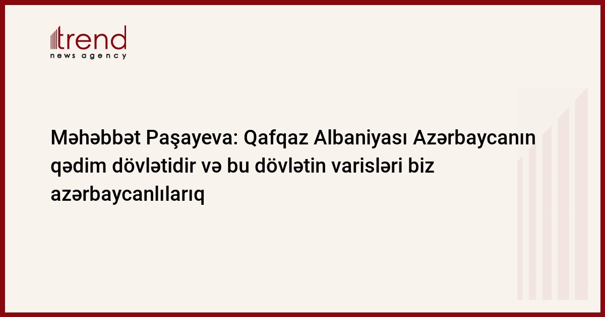 M.Paşayeva bildirib ki, Qafqaz Albaniyasının bizə qoyduğu mirası tədqiq etmək üçün böyük işlər görülüb: