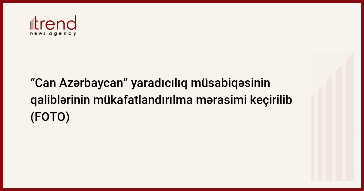 27 aprel tarixində Azərbaycan Respublikası Mədəniyyət Nazirliyi, Azərbaycan Rəssamlar İttifaqının dəstəyi, Azərbaycan Dövlət Rəsm Qalereyası, “İWS Azerbaijan” (İWS Globe – Beynəlxalq Suluboya Cəmiyyətinin Azərbaycandakı nümayəndəliyi) və Xətai Sənət Mərkəzinin təşkilatçılığı ilə elan olunmuş “Can Azərbaycan” yaradıcılıq müsabiqəsinin qaliblərinin mükafatlandırılma və Xətai Akvarel Qalereyasının açılış mərasimi keçirilib.
