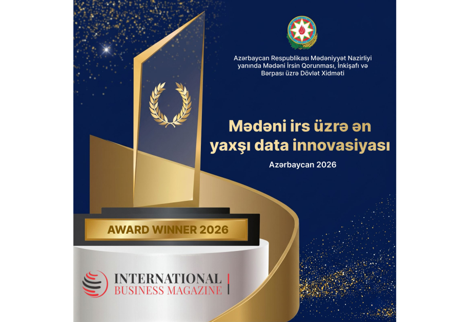 Nazirlikdən Trend-ə bildirilib ki, Dövlət Xidməti "International Business Magazine" beynəlxalq media qurumunun 2026-cı il üzrə təşkil etdiyi müsabiqədə "Mədəni irs üzrə ən yaxşı data innovasiyası" ("Best Cultural Heritage Data Innovation Azerbaijan") nominasiyasında qalib elan olunub.