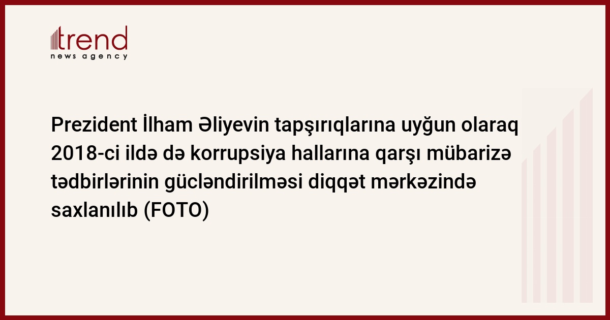 Yanvarın 14-də Azərbaycan Respublikasının Baş prokuroru yanında Korrupsiyaya qarşı Mübarizə Baş İdarəsi və Korrupsiyaya qarşı mübarizə üzrə Komissiya tərəfindən korrupsiyaya qarşı mübarizə sahəsində 2018-ci il ərzində görülmüş işlərlə bağlı kütləvi informasiya vasitələri və qeyri-hökumət təşkilatları nümayəndələrinin iştirakı ilə mətbuat konfransı keçirilib.
