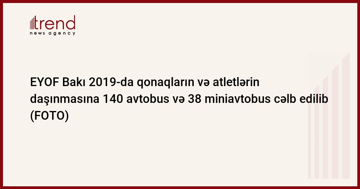 Bakıda keçirilən mötəbər idman oyunlarının və digər mərasimlərinin təşkilində əldə edilən uğurlu təcrübəyə söykənərək paytaxtımızın ev sahibliyi edəcəyi XV Avropa Gənclər Yay Olimpiya Festivalının nəqliyyat əməliyyatlarının icrası da Bakı Nəqliyyat Agentliyi (BNA) tərəfindən həyata keçiriləcək.