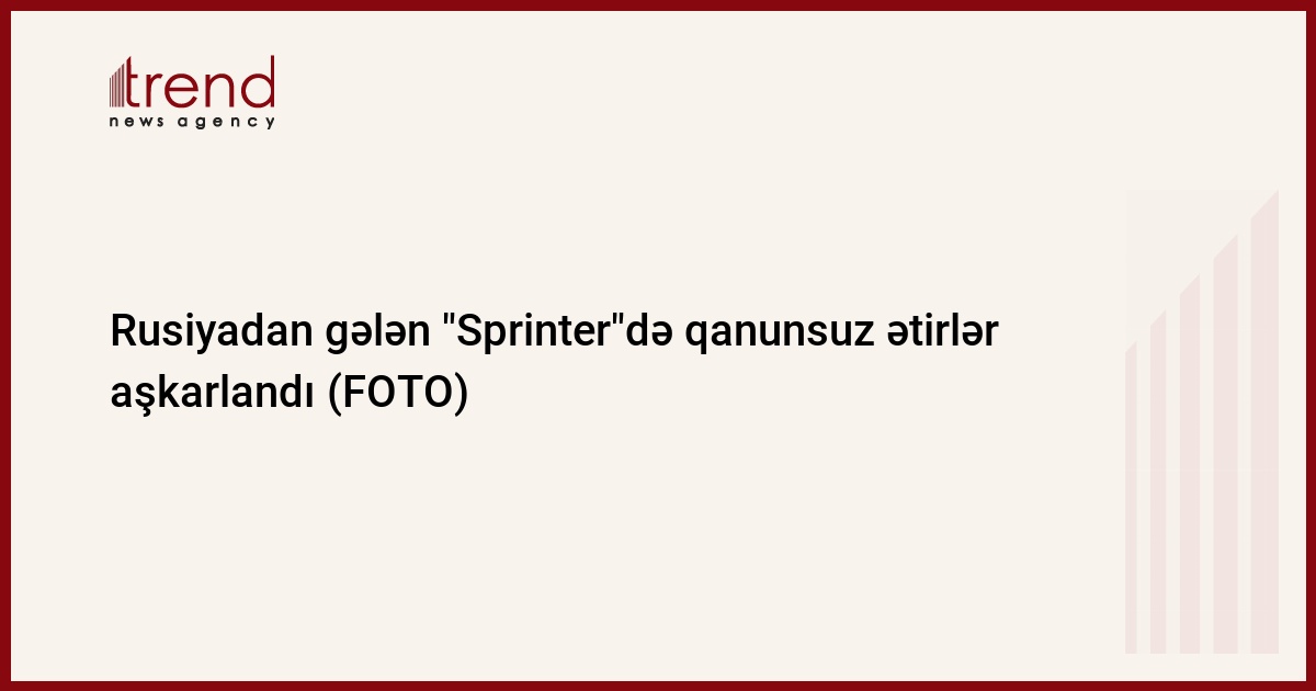 Dövlət Gömrük Komitəsindən Trend-ə verilən məlumata görə, Şimal Ərazi Baş Gömrük İdarəsinin Əməliyyat və təhqiqat şöbəsinə daxil olan əməliyyat məlumatı əsasında Rusiya Federasiyası istiqamətindən "Xanoba" gömrük postunun idxal gömrük nəzarəti xəttinə daxil olan Azərbaycan Respublikası vətəndaşının idarə etdiyi "Mercedes Benz Sprinter" markalı avtomobil saxlanılıb və gömrük baxışı keçirilib.