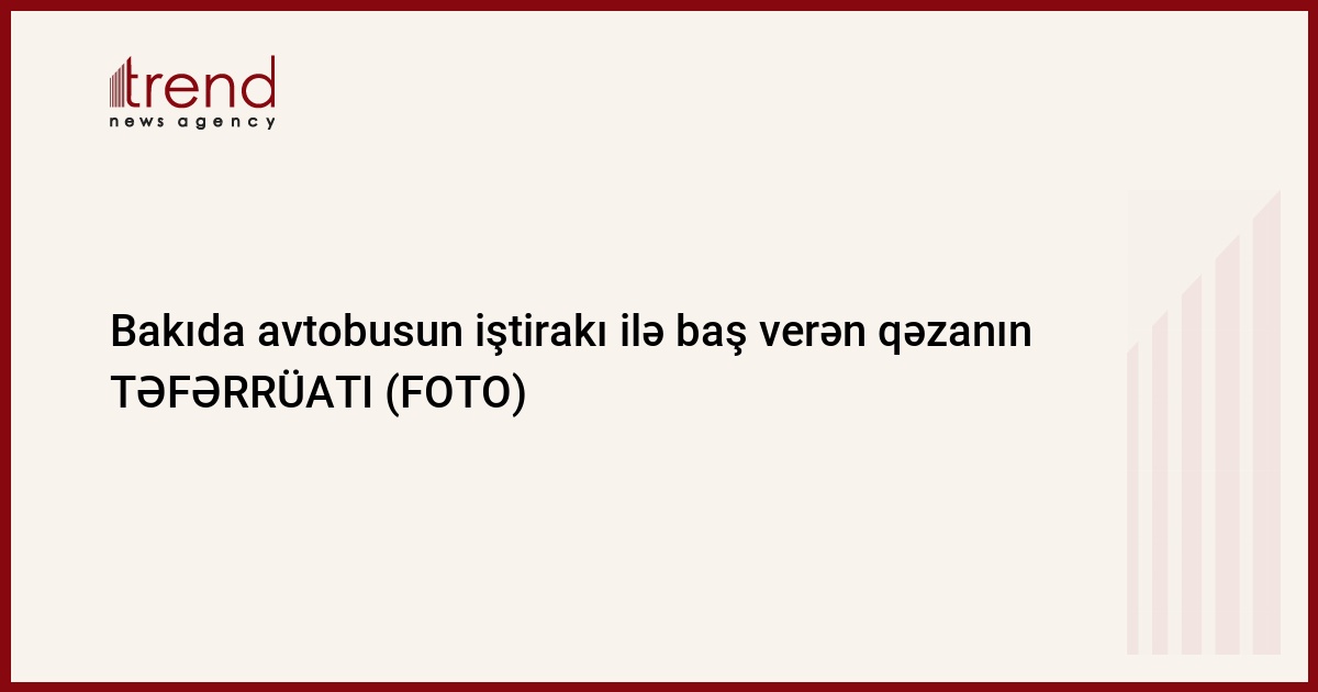 Bakı Nəqliyyat Agentliyindən (BNA) Trend-ə verilən məlumata görə, Bakıxanov qəsəbəsi istiqamətində hərəkət edən OPEL markalı minik avtomobili digər nəqliyyat vasitəsinə dəyərək əks istiqamətdə gələn nəqliyyat vasitələrinin yoluna çıxıb. Daha sonra Qara Qarayev prospekti istiqamətində hərəkət edən 49 nömrəli müntəzəm marşrut xətti ilə hərəkətdə olan (99 XJ 582 Dövləq Qeydiyyat Nişanı) avtobusun qarşısına çıxaraq avtobusa dəyib. Sərnişinlər arasında xəsarət alan yoxdur.