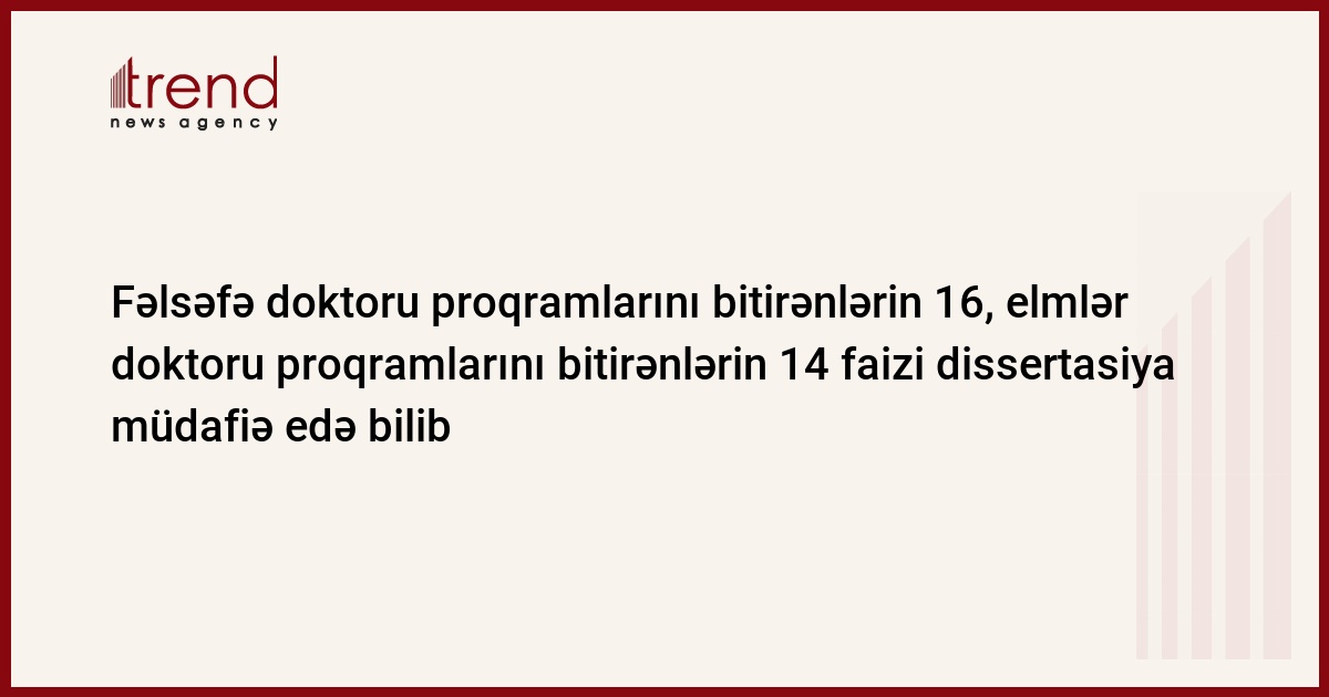 Fəlsəfə doktoru proqramlarını bitirənlərin 16, elmlər doktoru proqramlarını bitirənlərin 14 faizi dissertasiya müdafiə edə bilib. Bu məsələ bizi ciddi düşündürməlidir. Hesab edirik ki, son zamanlar qəbul olunan mühüm qərarlar bu sahədə ciddi irəliləyişin yaranmasına imkan verəcək.