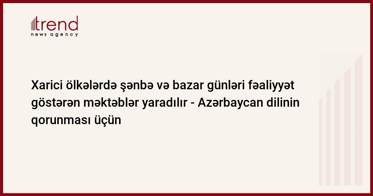 Azərbaycan dilinin qorunub saxlanması üçün xarici ölkələrdə şənbə və bazar günləri fəaliyyət göstərən məktəblərin yaradılmasına başlanılıb.