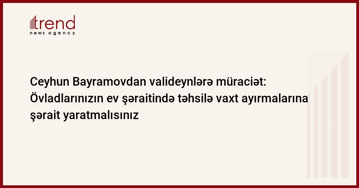 Trend-in məlumatına görə, bunu Təhsil naziri Ceyhun Bayramov Novruz bayramı münasibətilə şagird, müəllim və valideynlərə etdiyi müraciətində deyib.