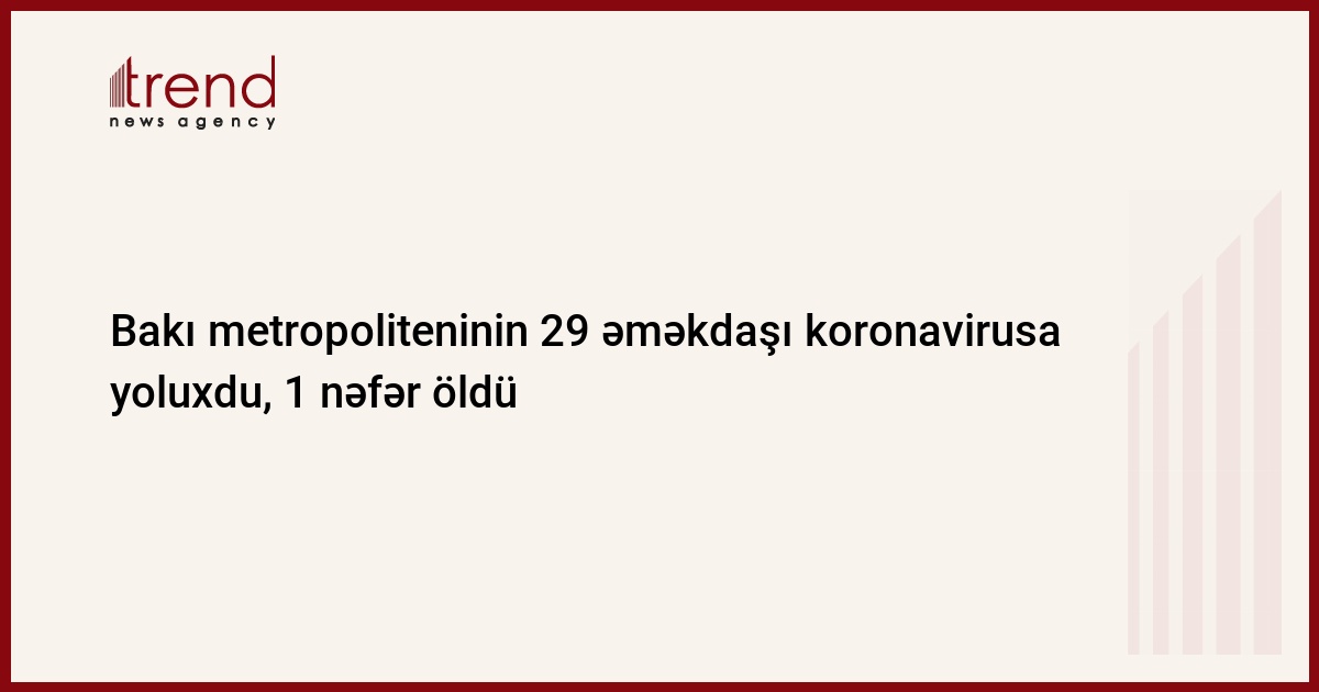 "Bakı Metropoliteni" Qapalı Səhmdar Cəmiyyətinin 29 əməkdaşı yeni tip koronavirus ("COVID-19") infeksiyasına yoluxub.