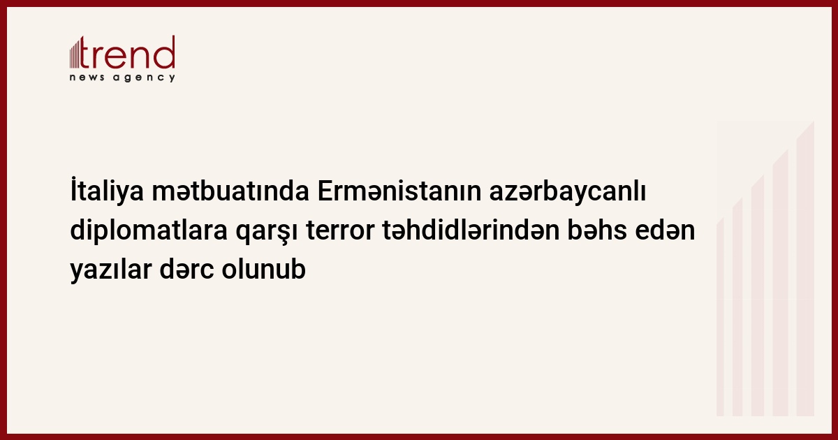İtaliyanın “Giornale Diplomatico”, “KmetroO”, “Politicamente Corretto” xəbər saytları və “Agenzia Nova” informasiya agentliyi “Ermənistan tərəfindən azərbaycanlı diplomatlara qarşı terror təhdidləri” başlığı altında son günlər sosial şəbəkələrdə erməni istifadəçilər tərəfindən dünyanın müxtəlif ölkələrində fəaliyyət göstərən Azərbaycan və Türkiyə diplomatlarına qarşı həyati təhlükə xarakterli çağırışların yayılmasına dair məlumatlar dərc edib.