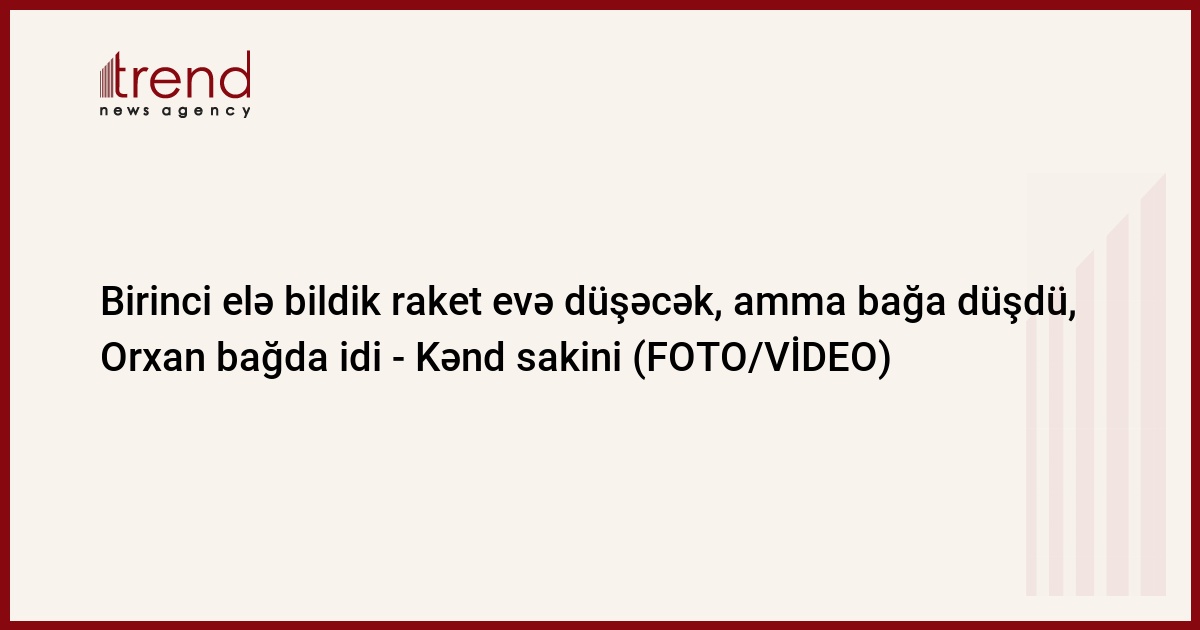Kənd sakinlərinin dediklərinə görə, raketin səsi gələndə birinci elə bildik ki, raket evə düşəcək. Daha sonra gördük evin bağına düşdü: "Həmin zaman bağda olan Orxanın yaralandığını gördük. Biz çalışdıq ki, yaralını tez xəstəxanaya çatdıraq, bəlkə həyatın xilas etmək olar, amma mümkün olmadı".
