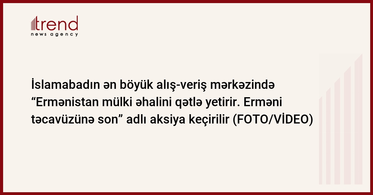 Ermənistanın Azərbaycana qarşı təcavüzü və müllki əhaliyə qarşı məqsədli raket hücumları nəticəsində Azərbaycanın Gəncə, Mingəçevir və digər yaşayış məskənlərində həlak olmuş həmvətənlərimizin əziz xatirəsini anmaq və erməni vəhşiliklərini dünya ictimaiyyətinə çatdırmaq məqsədilə İslamabadın ən böyük alış-veriş mərkəzi olan “Centaurus Mall”-da keçirilən aksiyada Erməni terrorunu özündə əks etdirən posterlərin, şəkillərin və şuarların yer aldığı güşənin nümayişinə başlanıb.