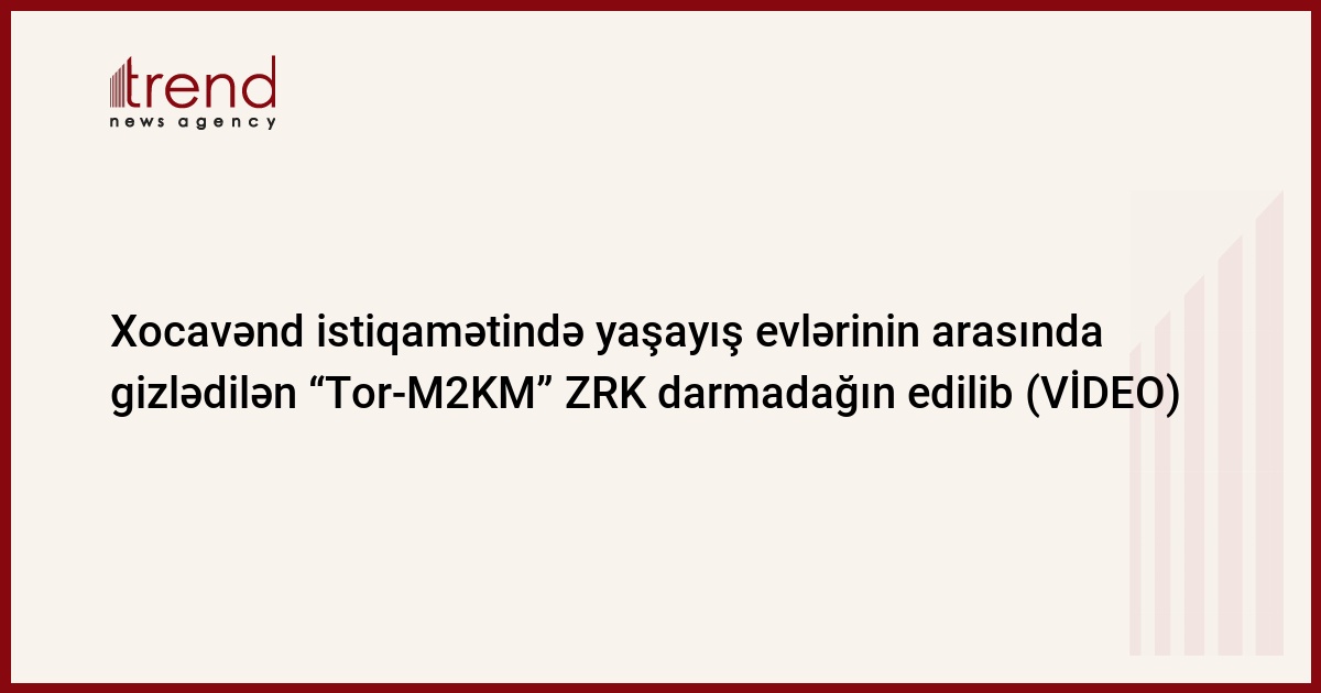 Noyabrın 9-da saat 15:50-də cəbhənin Xocavənd istiqamətində düşmən tərəfindən fərdi yaşayış evlərinin arasında yerləşdirilmiş və aviasiya vasitələrimizə qarşı tətbiq olunan “Tor-M2KM” zenit-raket kompleksi (ZRK) bölmələrimizin dəqiq atəşi ilə məhv edilib.