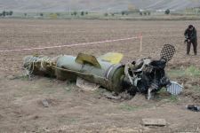 Füzuli rayonunun yaşayış məntəqəsinə Ermənistan silahlı qüvvələri tərəfindən atılan "Tochka U" raketinin qalıqları jurnaistlərə təqdim edilib.