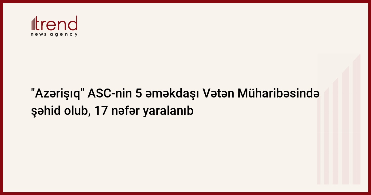 Qurumdan Trend-ə verilən məlumata görə, Vətən Müharibəsində Səhmdar Cəmiyyətin ümumilikdə 293 əməkdaşı iştirak edib, onlardan 5-i şəhid olub, 17-si isə yaralanıb.