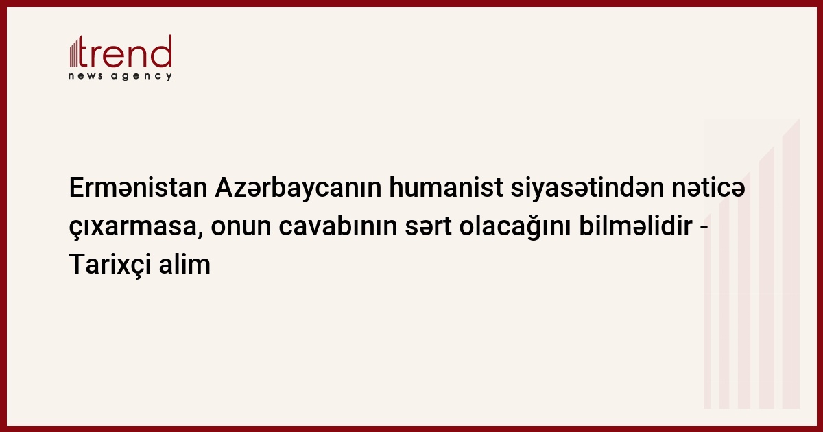 Vətən müharibəsindən sonra Ermənistan Azərbaycanın humanist siyasətindən nəticə çıxarmalı və təxribatçı addımlar atmamalıdır. Əgər nəticə çıxarmasa, Ermənistan bunun cavabının sərt olacağını və böyük problemlə üzləşəcəyini bilməlidir.