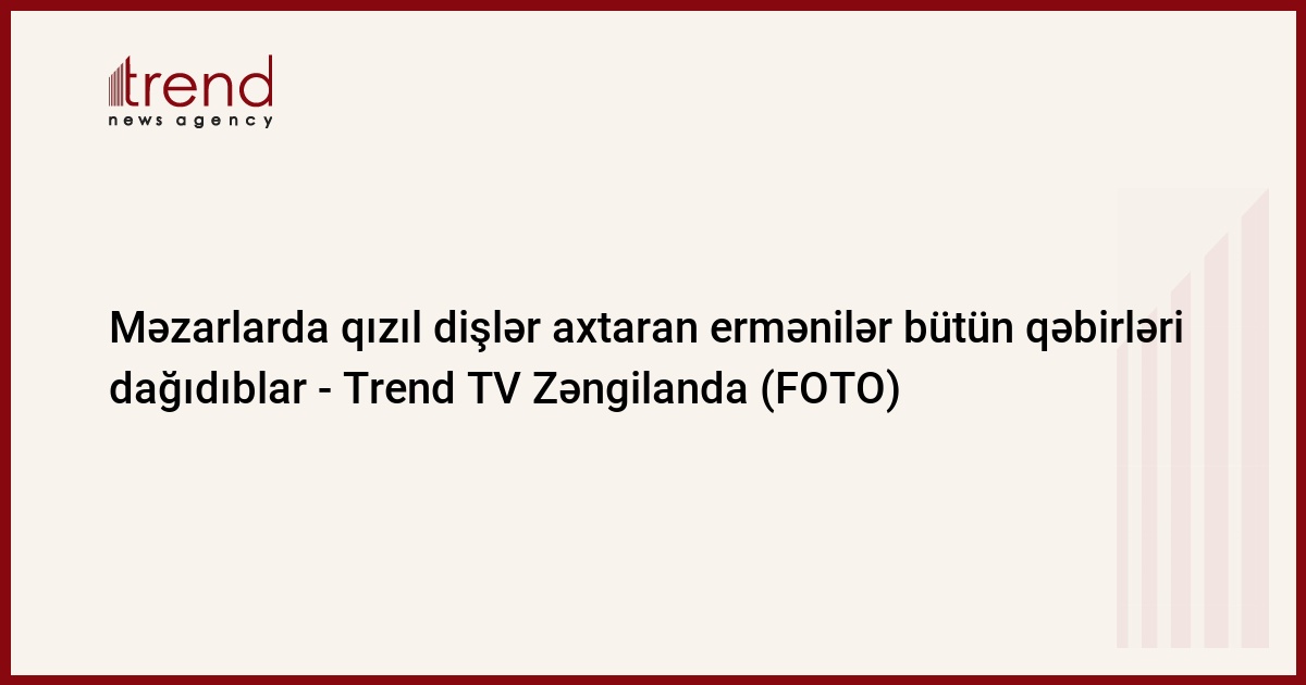 Trend-in Qarabağ bürosu xəbər verir ki, Zəngilan şəhərində olan məzarlıq tamamilə dağıdılıb. Ağzında qızıl dişi olduğu ehtimal olunan qəbirlər sökülərək, içindəki meyitlər çıxarılıb. Ermənilər eyni zamanda bütün məzarlıqda olan ağ və qara mərmər qəbir daşlarını da söküb aparıblar.