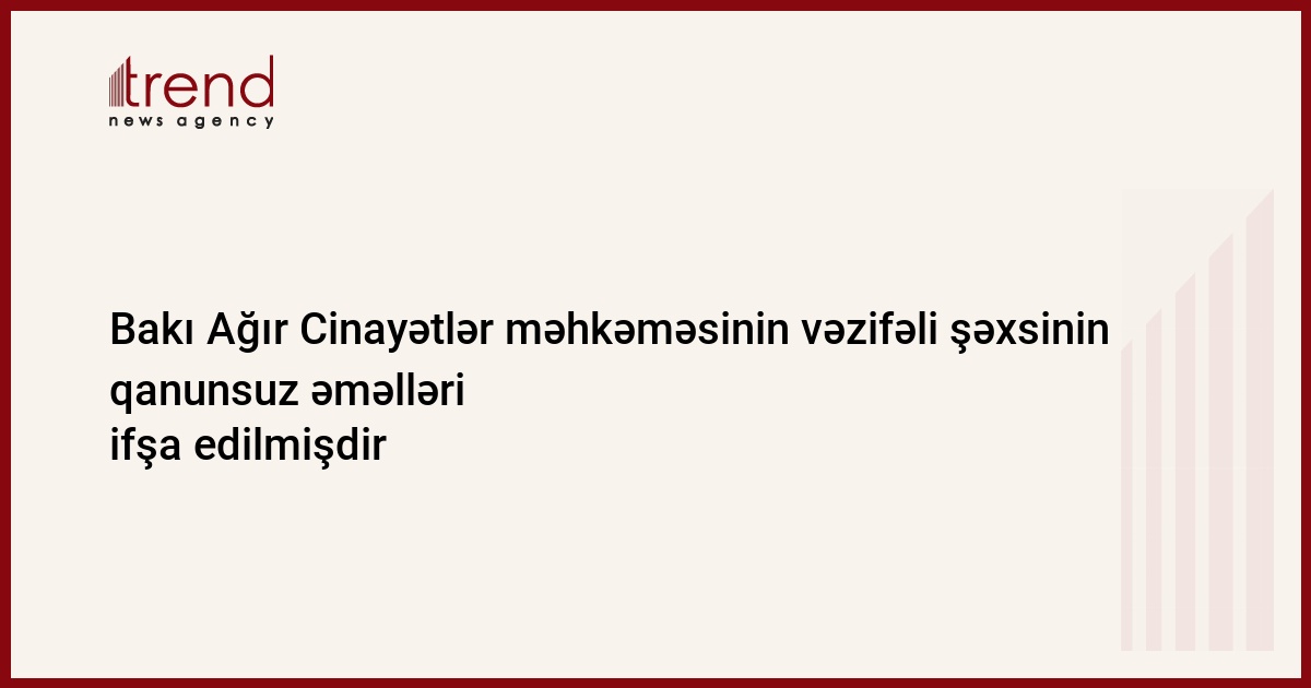 Baş Prokurorluqdan Trend-ə verilən məlumata görə, belə tədbirlərdən biri kimi Bakı Ağır Cinayətlər Məhkəməsində böyük mütəxəssis-operator vəzifəsində işləmiş Xələfzadə İbrahim Etibar oğlunun qanunsuz hərəkətləri barədə vətəndaşın həmin məhkəmədən daxil olmuş müraciəti əsasında aparılmış araşdırma nəticəsində Baş prokuror yanında Korrupsiyaya qarşı Mübarizə Baş İdarəsində Azərbaycan Respublikası Cinayət Məcəlləsinin müvafiq maddələri ilə cinayət işi başlanıb.