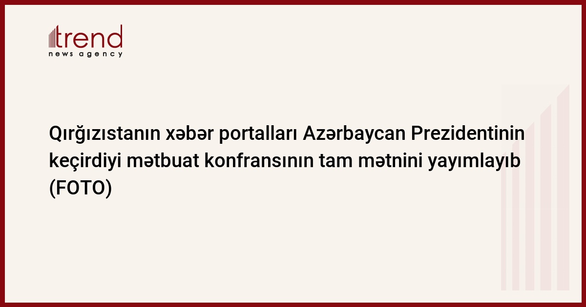 Qırğızıstanın “goldenbridgenews.com” və “turkeltoday.info” portalları AZƏRTAC-ın “Prezident İlham Əliyev yerli və xarici media nümayəndələri üçün mətbuat konfransı keçirib” sərlövhəli materialının tam mətnini yayımlayıb.