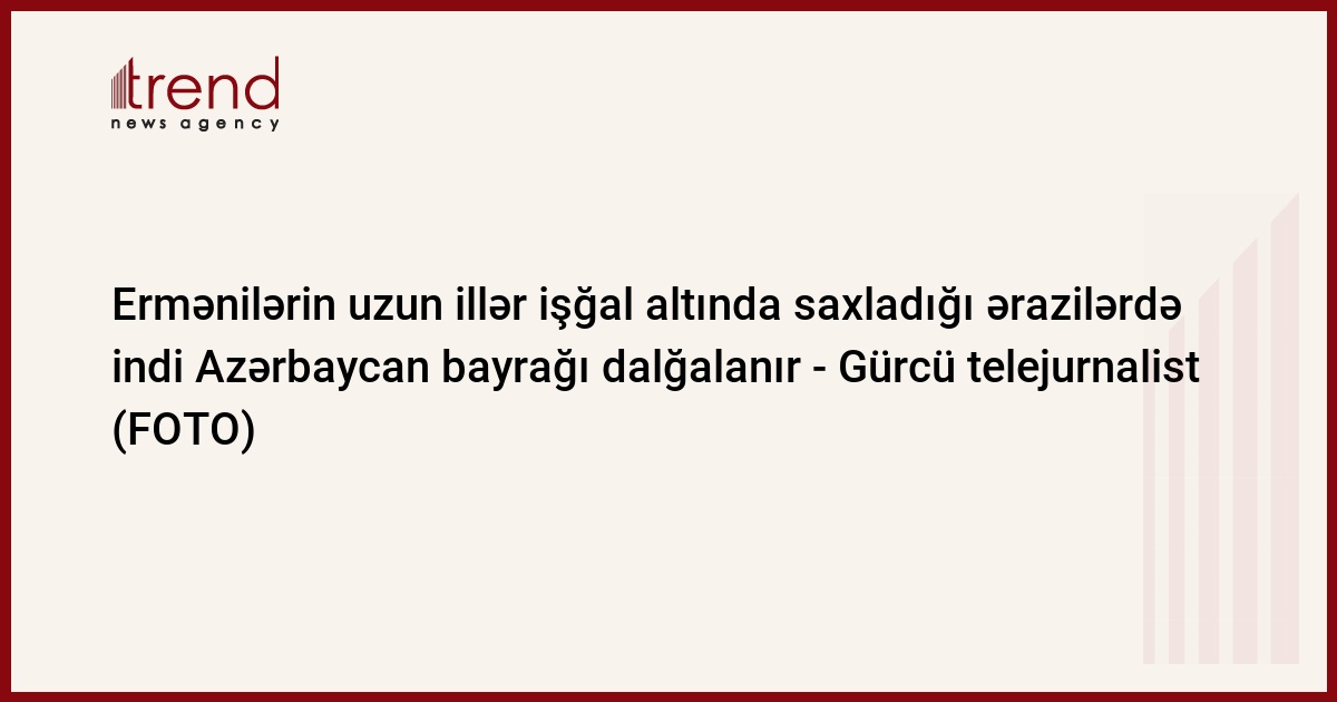 Trend-in məlumatına görə, bu barədə gürcü telejurnalist, “Mtavari arxi” telekanalının müxbiri Nani Sisvadze Azərbaycanın işğaldan azad olunmuş ərazilərindən hazırlanan reportajda məlumat verilib.