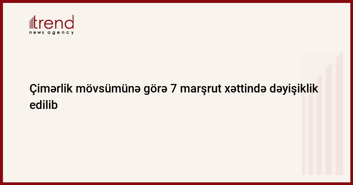 Mövsümi xarakterli dəyişikliyə əsasən, 16.06.2021 tarixindən 101 nömrəli müntəzəm marşrutun hərəkət istiqaməti “Türkan” çimərliyinədək, 107 nömrəli müntəzəm marşrutun hərəkət istiqaməti “Buzovna” çimərliyinədək, 146 nömrəli müntəzəm marşrutun hərəkət istiqaməti “Şüvəlan” çimərliyinədək, 179 nömrəli müntəzəm marşrutun hərəkət istiqaməti “Pirşağı” çimərliyinədək, 180 nömrəli müntəzəm marşrutun hərəkət istiqaməti “Zirə” çimərliyinədək, 182 nömrəli müntəzəm marşrutun hərəkət istiqaməti “Mərdəkan” çimərliyinədək, 189 nömrəli müntəzəm marşrutun hərəkət istiqaməti Nardaran qəsəbəsinin “Ləhic” bağlarına qədər təşkil ediləcək.