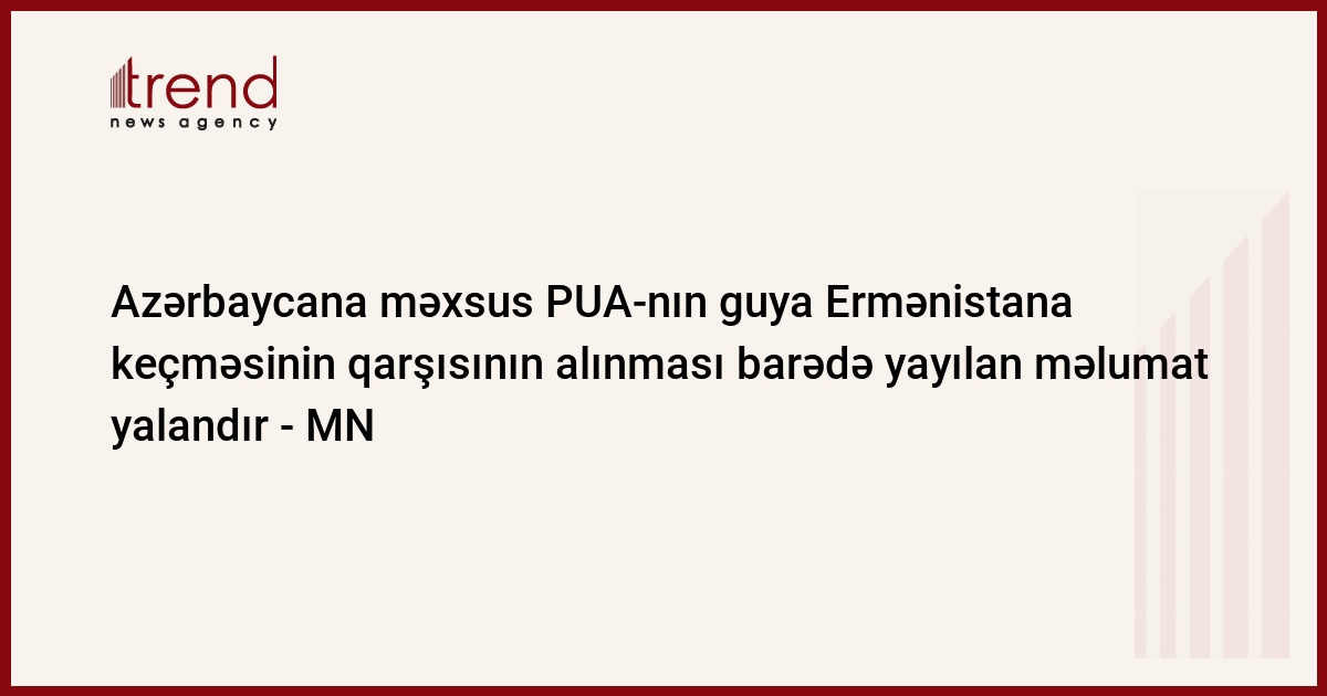 Bu barədə Müdafiə Nazirliyindən (MN) Trend-in sorğusuna verilən cavabda deyilir.
