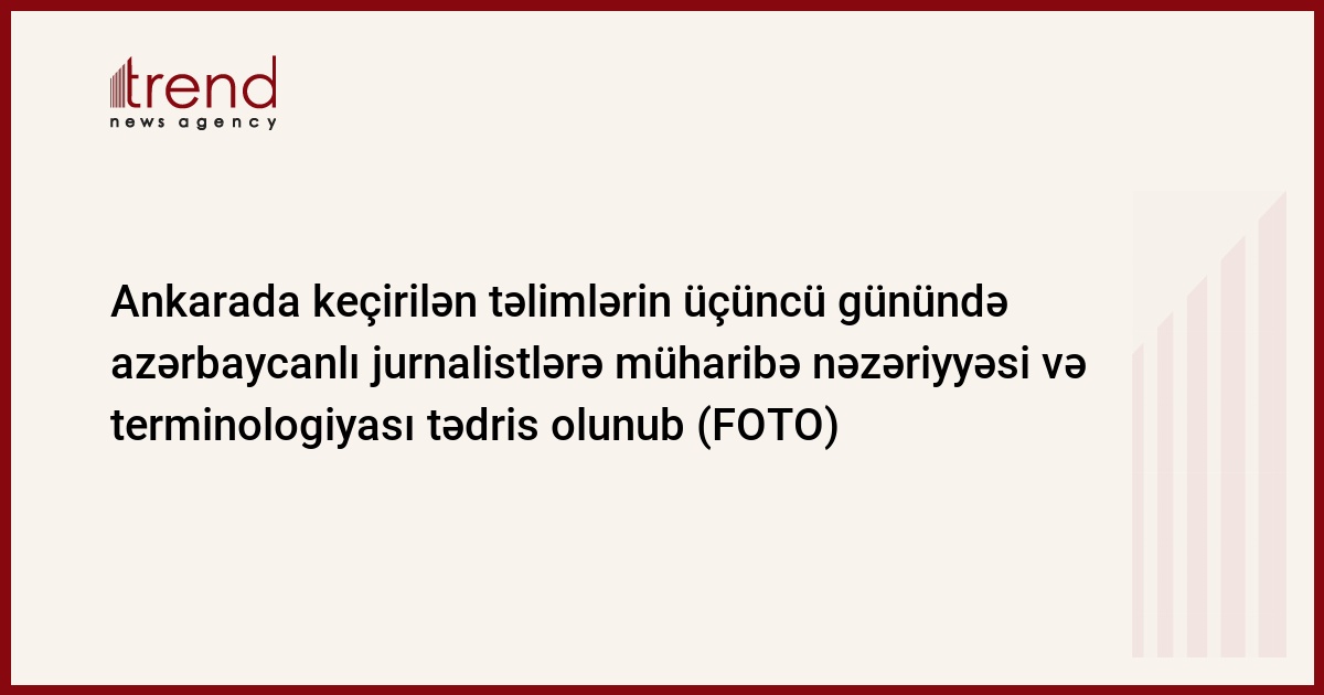 Anadolu Agentliyinin, Türk Əməkdaşlıq və Koordinasiya Agentliyinin (TİKA), Türkiyə Polis Akademiyasının və Azərbaycan Respublikasının Medianın İnkişafı Agentliyinin (MEDİA) birgə təşkilatçılığı ilə Ankarada “Müharibə dövründə jurnalistika” mövzusunda təlimlərin üçüncü günündə - avqustun 11-də iştirakçılara müharibə nəzəriyyəsi və terminologiyası, ictimai hadisələrə müdaxilə mövzusu tədris olunub.