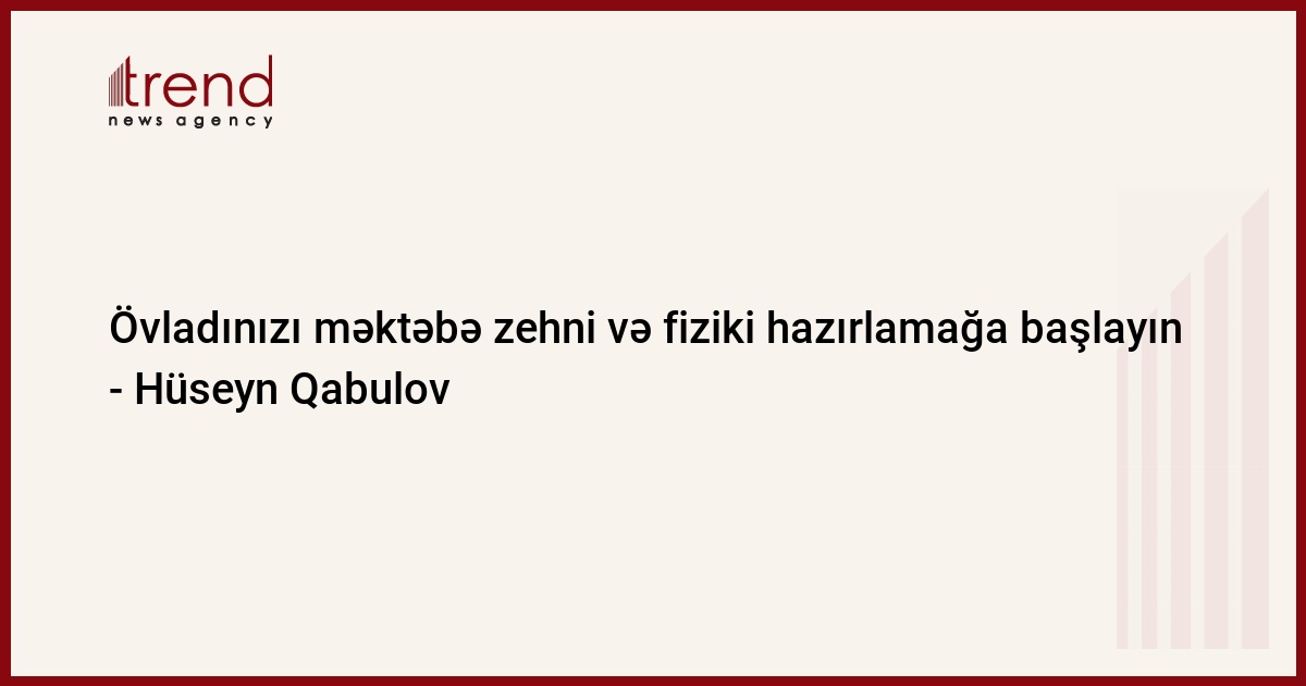 Hüseyn Qabulov valideynlərdə onu da tövsiyə edib ki, evdə, əyləncəli formada bir məktəb dərsinin səhnəciyini yaradın: stullar qoyun, potensial bir şagirdi, bacı-qardaşlarını otuzdurun, əgər yoxdursa, uşağın sevimli oyuncaqlarından istifadə edin və s.