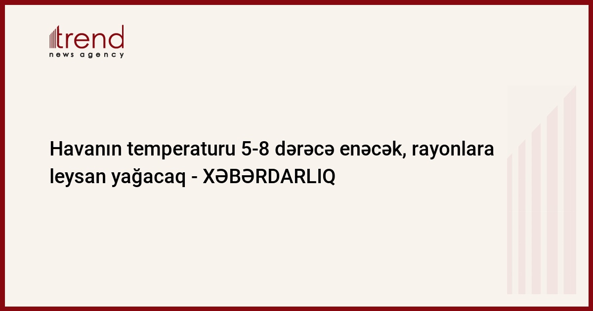 Havanın temperaturu ötən günlərlə müqayisədə tədricən 5-8° aşağı enəcək.