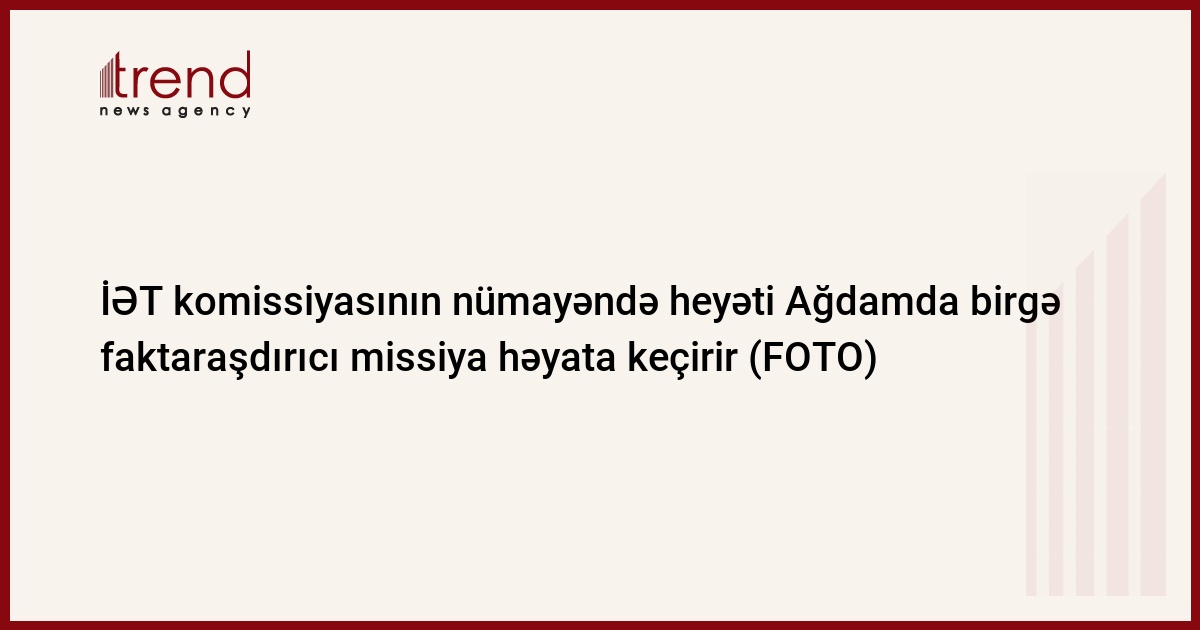 Azərbaycan Ombudsmanı Səbinə Əliyevanın dəvəti əsasında ölkəmizdə rəsmi səfərdə olan İslam Əməkdaşlığı Təşkilatının Müstəqil Daimi İnsan Hüquqları Komissiyasının (İƏT MDİHK) ekspertlərdən ibarət nümayəndə heyəti Ağdamda Ombudsman Aparatının əməkdaşları ilə birgə faktaraşdırıcı missiya həyata keçirir.