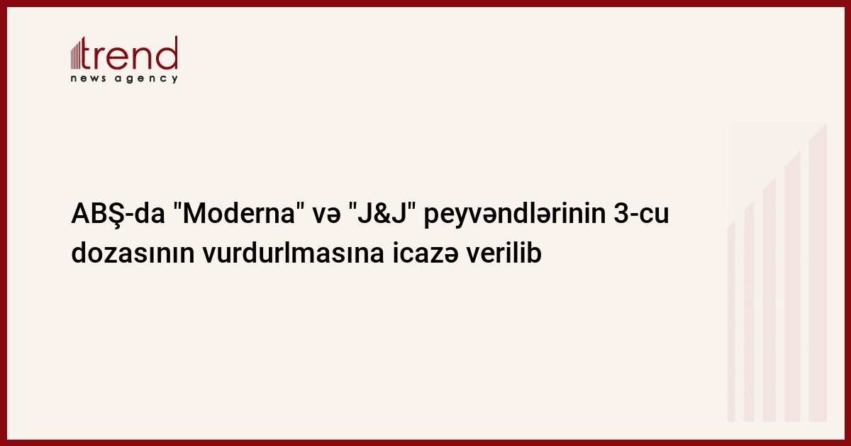 ABŞ-da "Moderna" və "Johnson & Johnson" (J&J) koronavirusa qarşı peyvəndlərinin 3-cü ("booster") dozalarının bir sıra əhali üçün kütləvi istifadəsinə icazə verilib.
