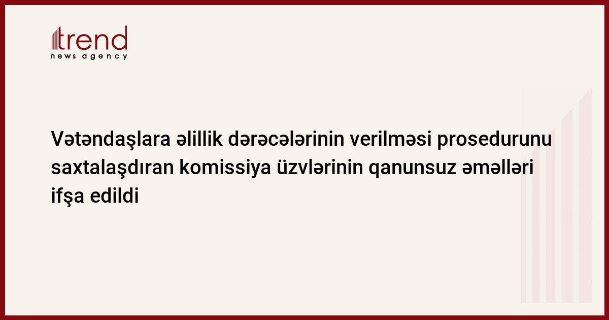 Baş prokurorluğun Mətbuat xidmətindən Trend-ə verilən məlumata görə, həmin işlər üzrə aparılmış istintaqla İcbari Tibbi Sığorta üzrə Dövlət Agentliyinin “Tibbi Ərazi Bölmələrinin İdarəetmə Birliyi” PHŞ-in 15 saylı şəhər Poliklinikasının Həkim Məsləhət Komissiyasının üzvləri Mehparə Məmmədova və Könül Sultanovanın öz vəzifə səlahiyyətlərindən sui-istifadə edərək fəaliyyət göstərdikləri Komissiyaya müraciət etmiş şəxslərə əlillik dərəcəsinin verilməsinə nail olmaq məqsədi ilə onların xəstəlikləri barədə məlumatları bilərəkdən ağırlaşdırıb təhrif edilmiş formada rəsmi elektron informasiya resursuna daxil etmələrinə, bununla da dövlətin qanunla qorunan mənafelərinə mühüm zərər vurmalarına əsaslı şübhələr müəyyən olunub.