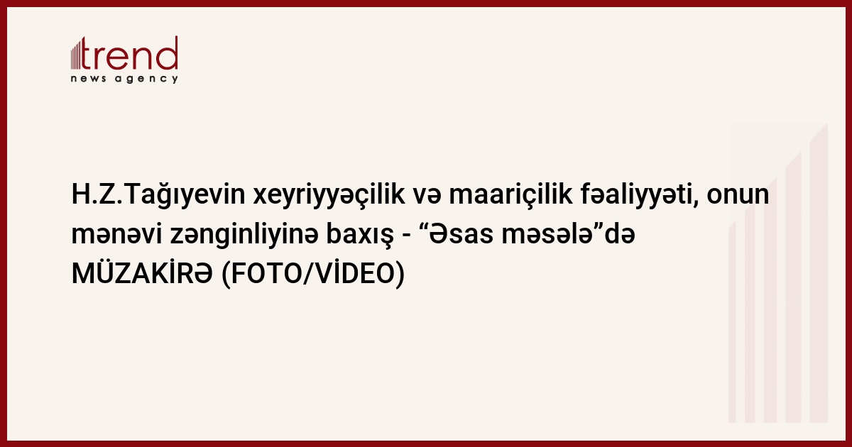 Trend-in məlumatına görə, Ətayə Ələmdarqızının təqdimatında AzTV-nin "Əsas məsələ" verilişində "H.Z.Tağıyevin abidəsinin açılışı, mina təhlükəsi və təhlükəsiz qayıdışın təmin edilməsi istiqamətində atılan addımlar, eləcə də Ermənistanın müharibə cinayətləri" mövzusunda aparılan müzakirələr zamanı bu barədə ətraflı danışılıb. Verilişin qonaqları - Milli Qeyri-Hökumət Təşkilatlari Forumunun rəhbəri Rauf Zeyni, AMİP sədri Arzuxan Əlizadə, Milli Məclisin deputati Tural Gəncəliyev və politoloq Aydın Quliyev mövzu ətrafında müzakirə aparıblar.