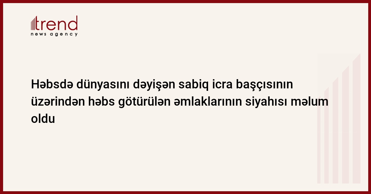 Ağstafa rayonunun həbs müddətində vəfat edən sabiq icra başçısı Nizaməddin Quliyevin üzərindən həbs götürülən əmlaklarının siyahısı məlum olub.