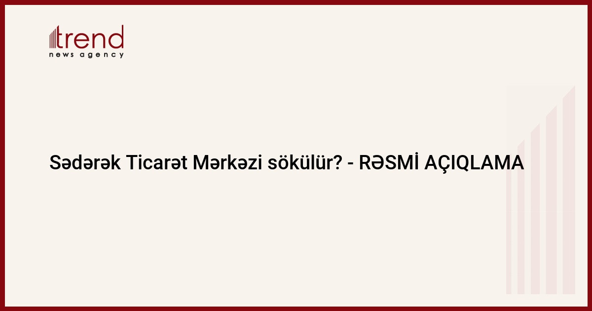 Xatırladaq ki, sosial şəbəkələrdə Sədərək Ticarət Mərkəzindən paylaşılan videoda adıçəkilən mərkəzin sökülərək köçürülməsi ilə bağlı fikirlər səsləndirilib.