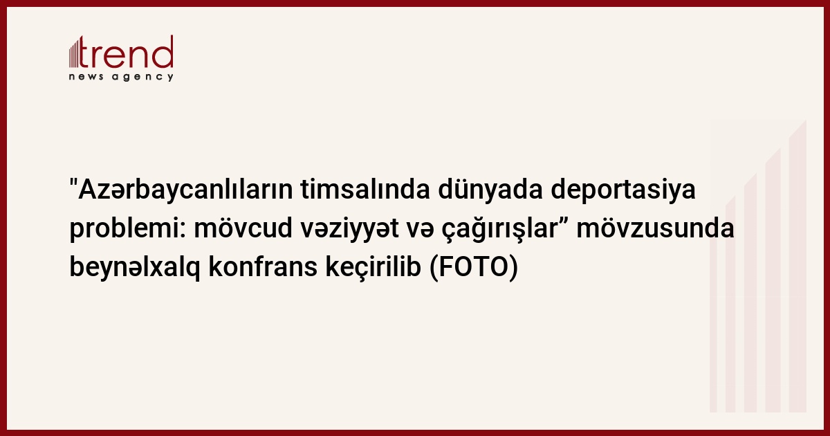 Məlum olduğu kimi, dekabr ayı tariximizdə həm də azərbaycanlıların Ermənistan SSR-dən deportasiya edilməsi ilə bağlı anım günləri ilə yadda qalır. Bu mövzunu daha geniş işıqlandırmaq və beynəlxalq ictimaiyyətin diqqətini Azərbaycanlıların deportasiyasına cəlb etmək məqsədilə Bakı Politoloqlar Klubunun təşkilatçılığı, News.az beynəlxalq xəbər agentliyinin mətbuat dəstəyi, Azərbaycan Dillər Universitetinin təşkilati dəstəyi ilə “Azərbaycanlıların timsalında dünyada xalqların deportasiyası problemi: mövcud vəziyyət və problemlər” mövzusunda beynəlxalq konfrans keçirilib.