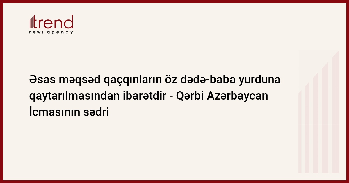 Trend xəbər verir ki, bunu Qərbi Azərbaycan İcmasının İdarə Heyətinin sədri, deputat Əziz Ələkbərli Milli Məclisin bu gün keçirilən iclasında çıxışı zamanı bildirib.