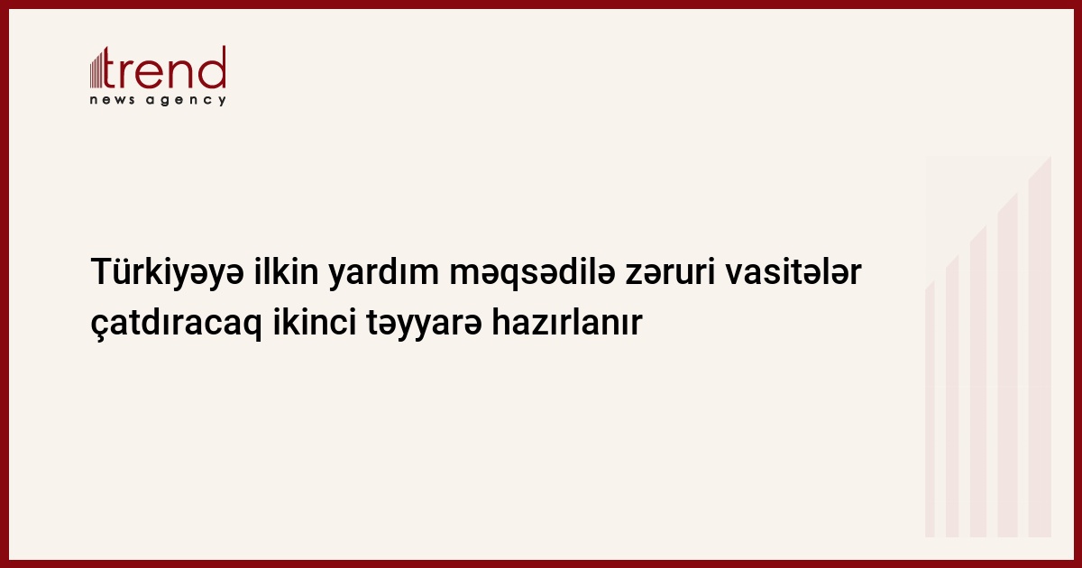 Azərbaycan tərəfi Türkiyəyə eyni zamanda ilkin yardım ləvazimatları da çatdıracaq. Bu məqsədlə ikinci təyyarə hazırlanır.