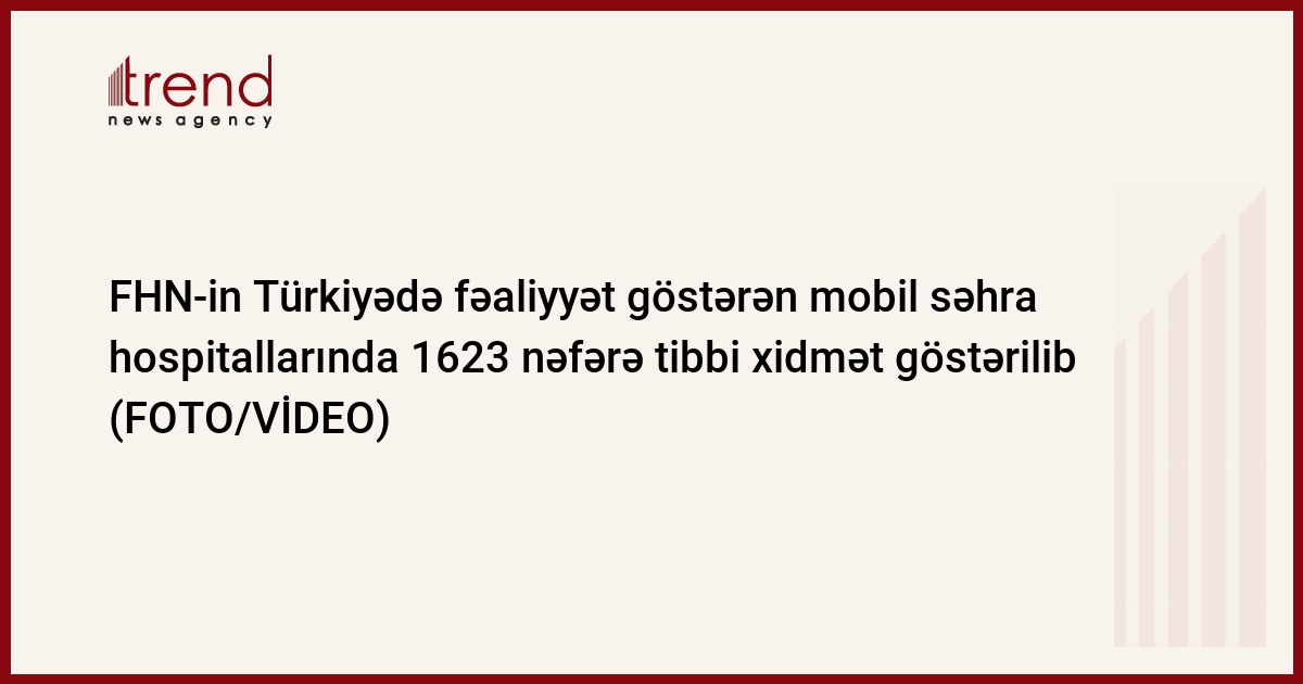 Azərbaycan Respublikasının Prezidenti cənab İlham Əliyevin tapşırığına əsasən Türkiyə Respublikasında baş vermiş güclü zəlzələnin fəsadlarının aradan qaldırılmasına dəstək məqsədilə qardaş ölkəyə göndərilmiş Fövqəladə Hallar Nazirliyinin mobil səhra hospitalları zəlzələnin ciddi zərər vurduğu Kahramanmaraş rayonunda fəaliyyətini davam etdirir.