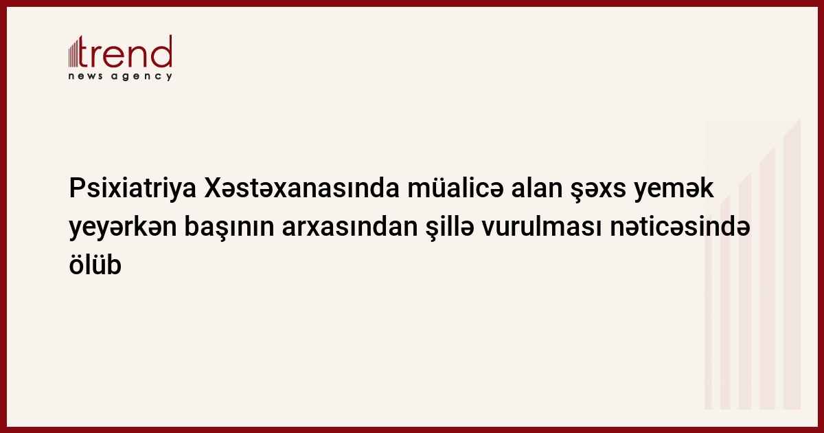 Ötən il dekabrın 27-də Respublika Psixiatriya Xəstəxanası Publik Hüquqi Şəxsində müalicə alan B.V-nin (şərti) yemək yeyərkən başının arxa hissəsindən şillə vurulması nəticəsində boğularaq ölməsi barədə Baş Prokurorluğun Mətbuat xidmətinə media nümayəndələri tərəfindən çoxsaylı sorğular daxil olub.