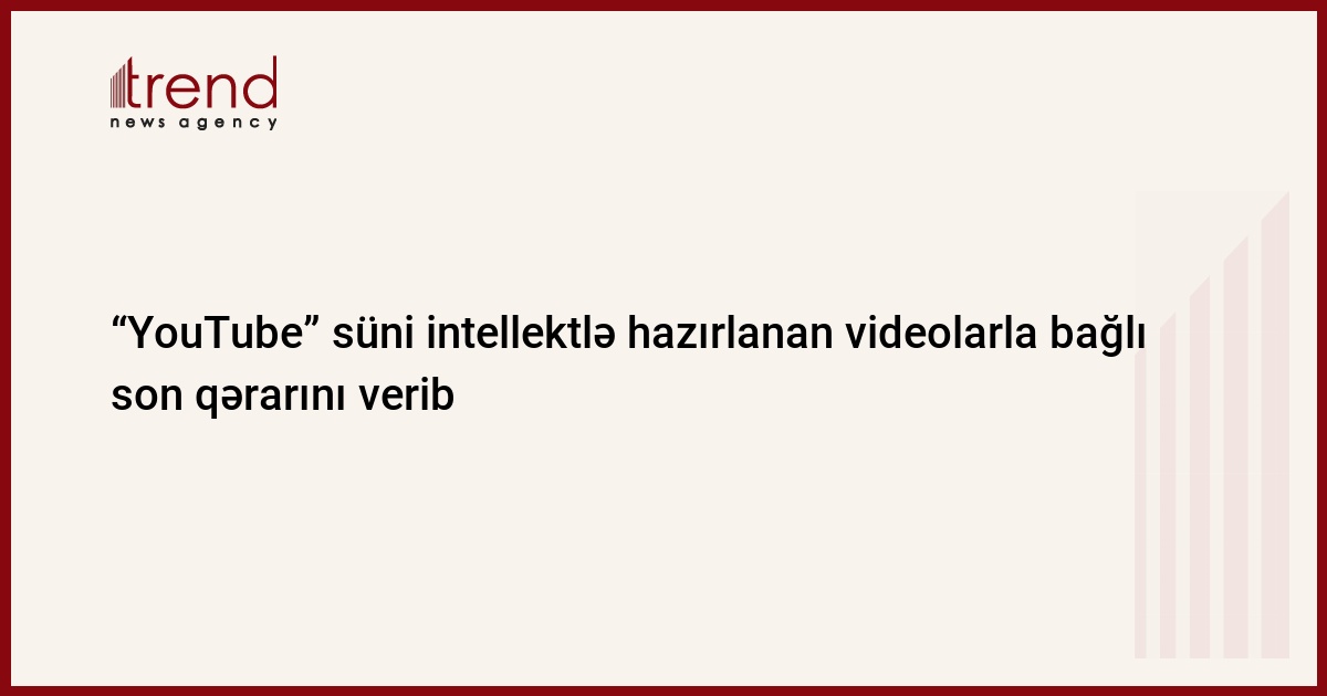 Trend-in məlumatına görə, istifadəçi “deepfake” (Dipfeyk süni intellekt neyron şəbəkələrindən istifadə edərək yaradılan foto, audio və video materialların, səsin sintezi üçün texnologiyadır) məzmunlu video yayımlayırsa, bunu həm “YouTube”a, həm də şərh bölməsində izləyicilərinə bildirməlidir. Bu məlumat paylaşılmazsa, video ən qısa zamanda silinəcək.