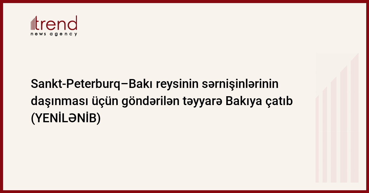 J2-020 nömrəli Sankt-Peterburq–Bakı reysinin sərnişinlərinin daşınması üçün Bakıdan göndərilən AZAL-a məxsus hava gəmisi paytaxta çatıb.